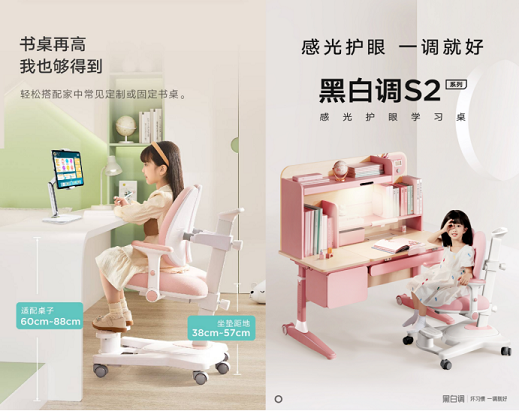 家长们应该建立科学的儿童用眼护眼知识,给孩子提供一个适宜的学习环境。特别注意,0-6岁是孩子视觉发育的关键期,应当更加重视孩子早期视力保护与健康。黑白调儿童桌椅,进入千万家庭,守护儿童健康,是千万妈妈的放心选择。黑白调新款s2感光护眼学习桌已正式上市,京东旗舰店有售!
